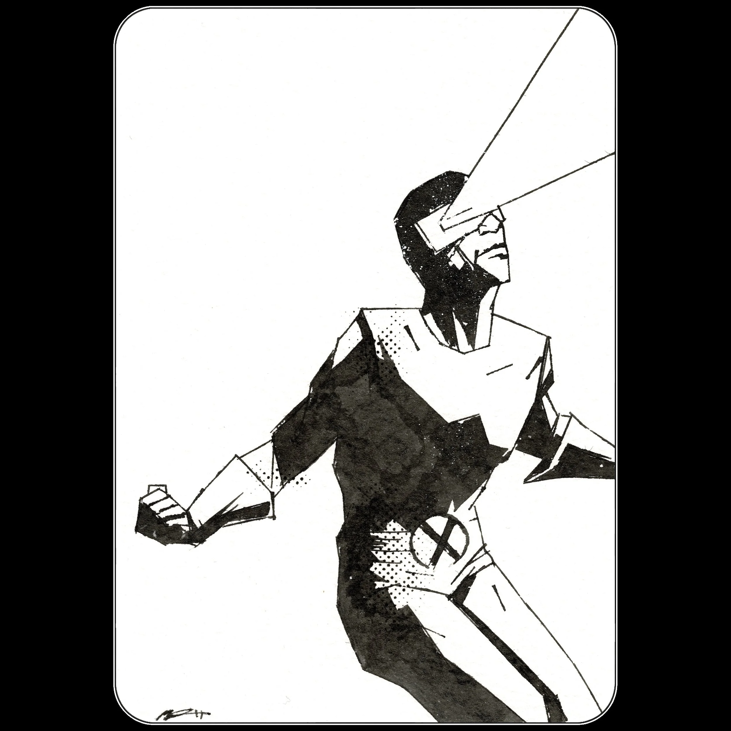 An Original art is black and white ink on a 10.5cm x 15cm 300gsm watercolour postcard (with rounded corners).