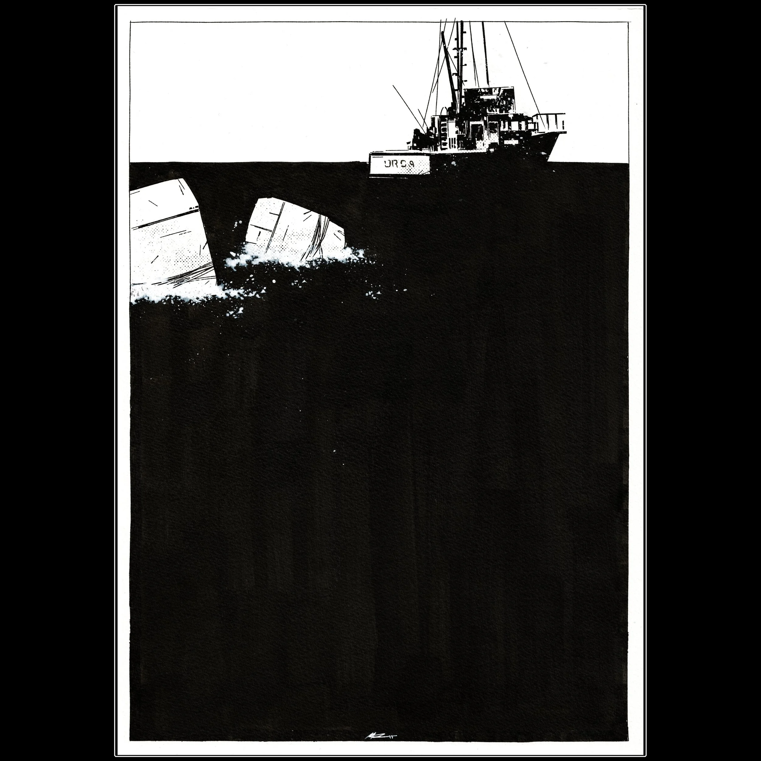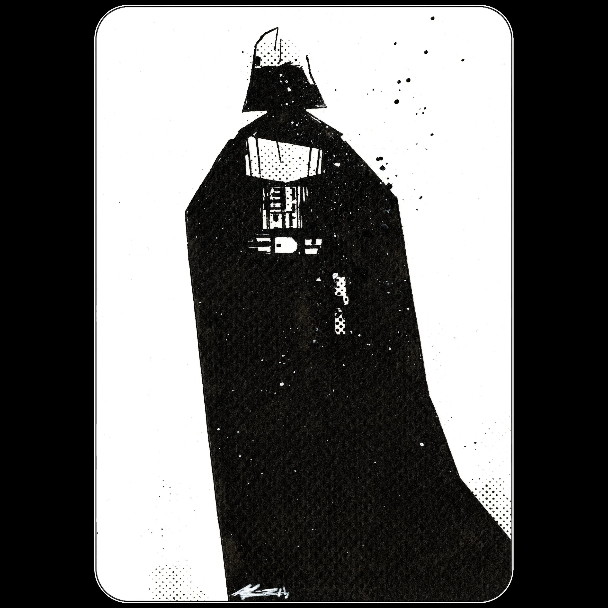 An Original art is black and white ink on a 10.5cm x 15cm 300gsm watercolour postcard (with rounded corners).