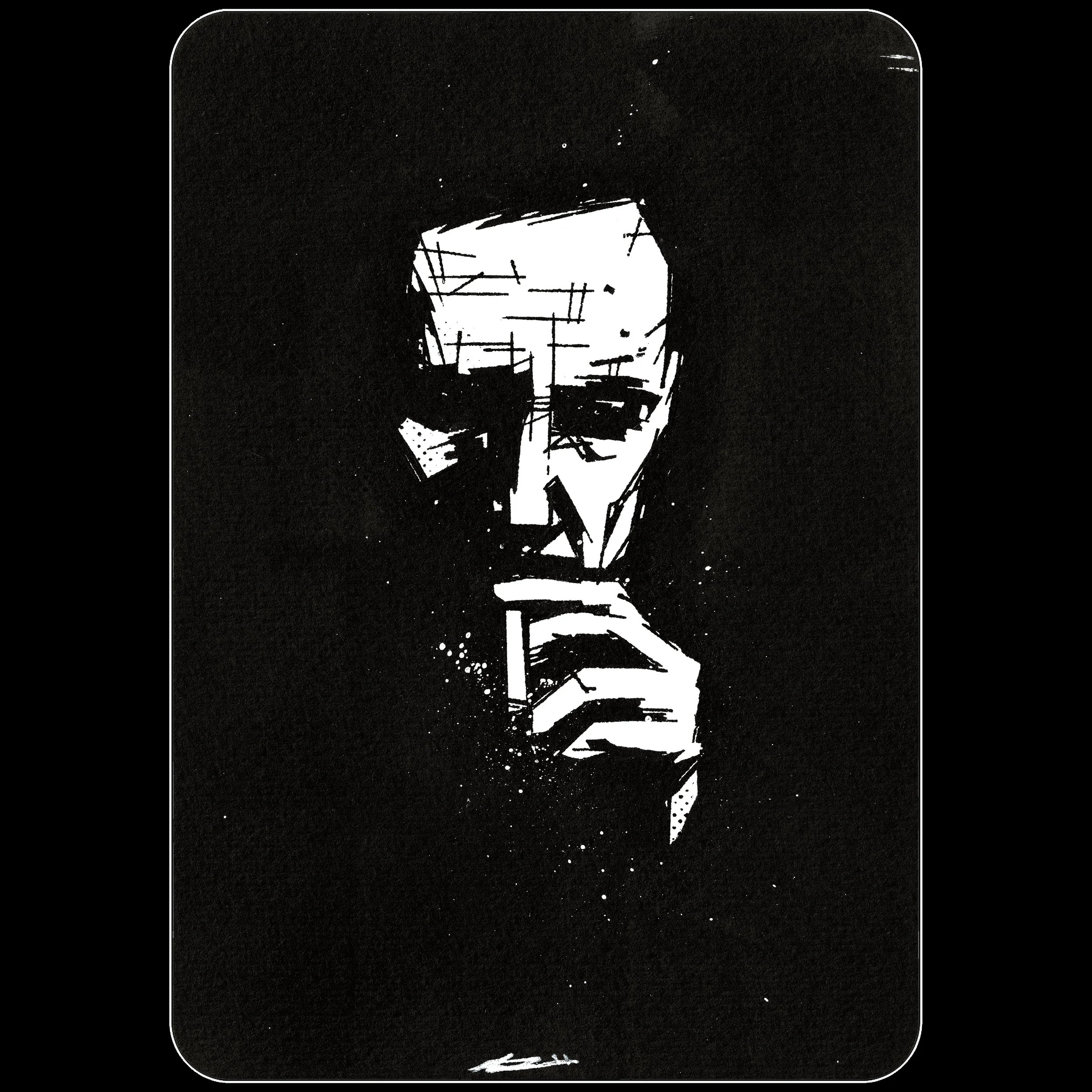 An Original art is black and white ink on a 10.5cm x 15cm 300gsm watercolour postcard (with rounded corners).