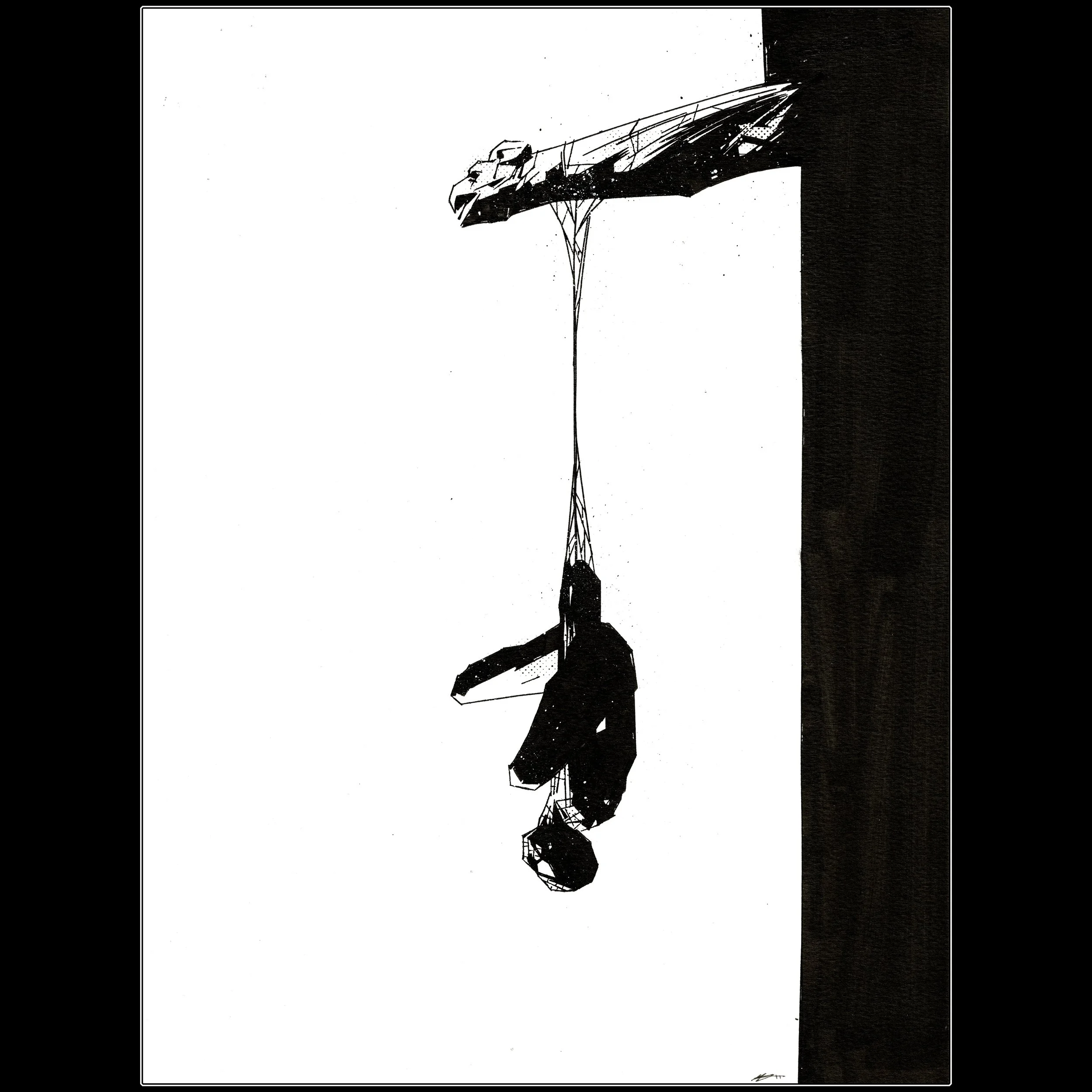 An Original art is black and white ink on a 10.5cm x 15cm 300gsm watercolour postcard (with rounded corners).